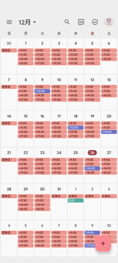 🔸土曜日はリピーター様優先枠となります。近い日程はご予約可能ですが毎回土曜日確定は難しいことご了承くださいませ。
